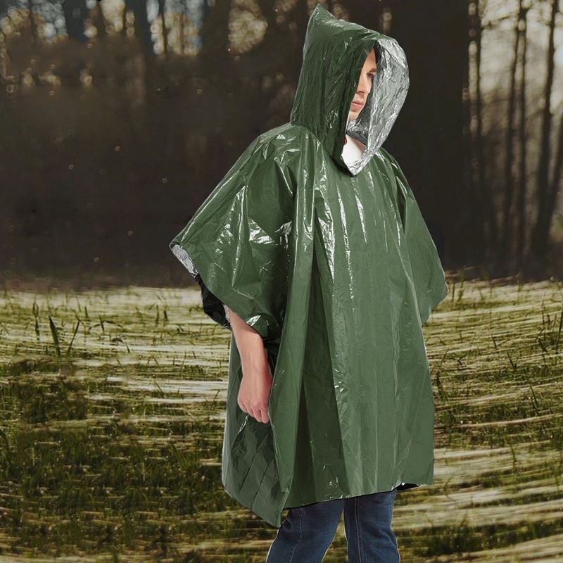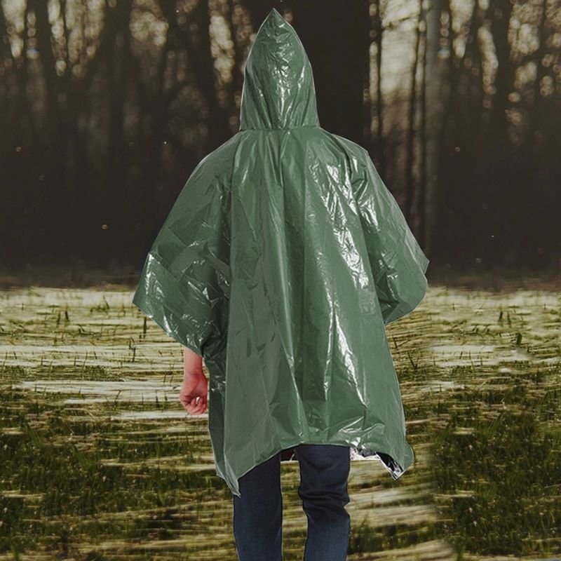 The hooded poncho can be used as a raincoat, camping mat, canopy shelter to block sunshine.
