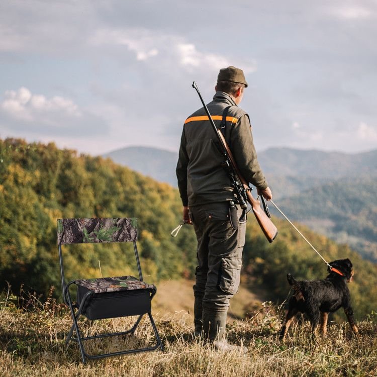 2.Convenient Storage Bag: The high-back blind chair boasts a large storage bag that holds outdoor necessities within reach for great convenience. What's more, with the smooth two-way zipper, you are able to fetch things effortlessly.