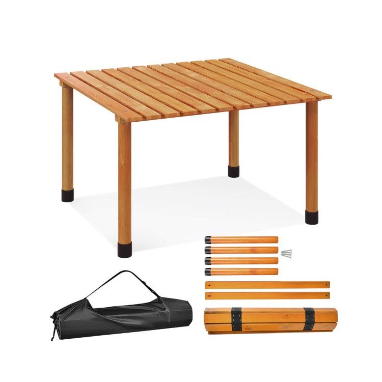● 100% Natural Fir Wood: Crafted with high quality fir wood, the outdoor folding camping table is wear-resistant, no odor and solid for longer companionship. Besides, through excellent craftsmanship, the finely polished surface is smooth and burr-free.