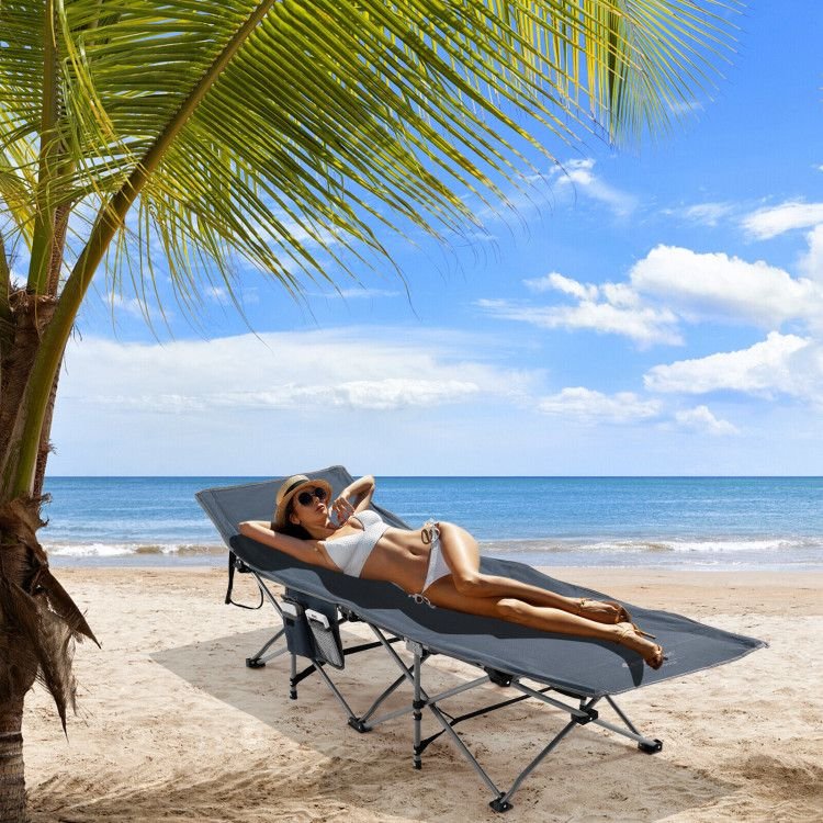 ● Wide Range of Applications: The camping cot with a mattress is suitable for camping, beach, hiking, hunting, climbing, travel, and more. It can also be used as a temporary guest bed at home, an escort bed in the hospital, or a nap bed in the office, which can be a perfect choice for indoor and outdoor rest. And there exists a side storage pocket keeping items at hand.