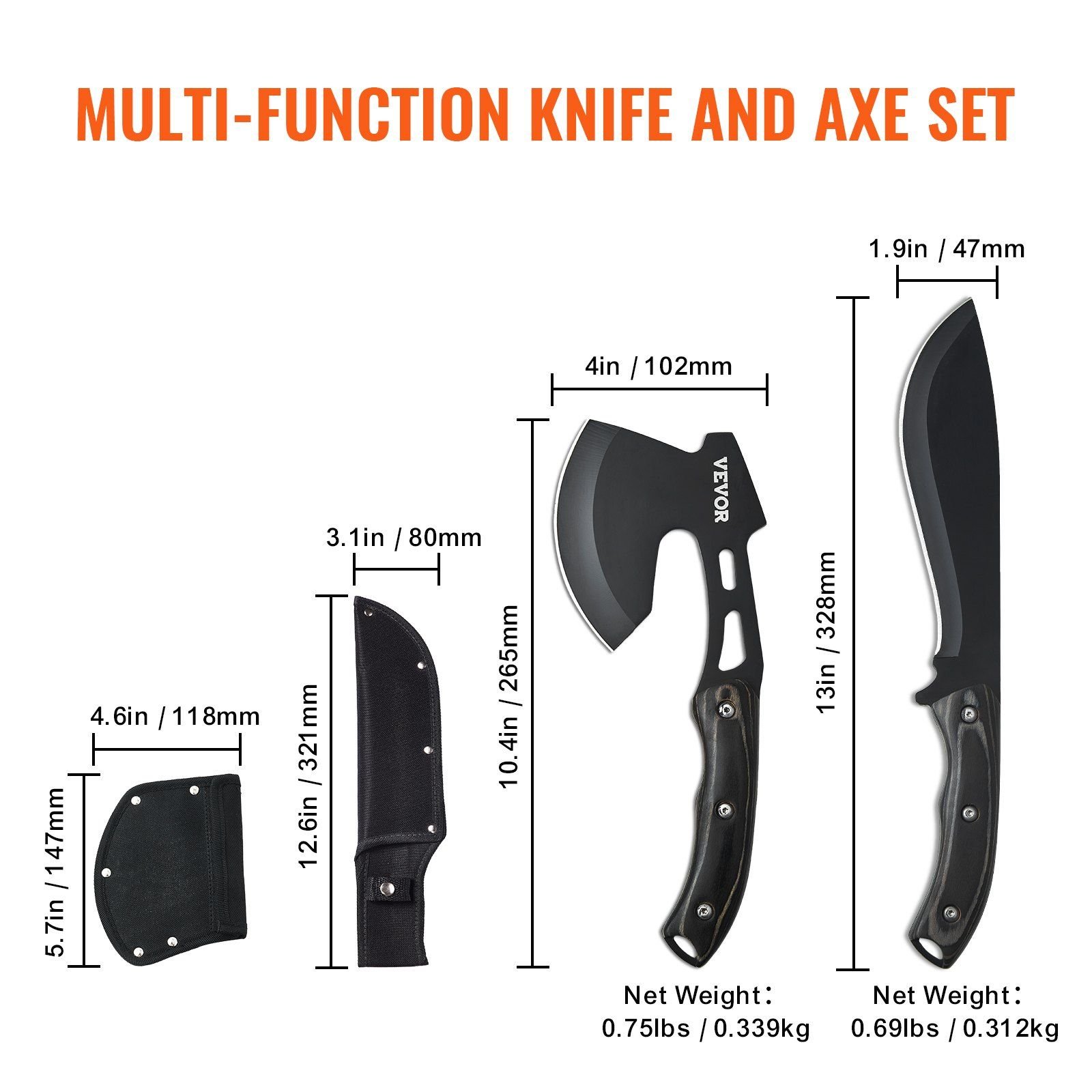 2.Durable & Long-Lasting: Constructed from high-strength 30Cr13 stainless steel, this hunting knife and hatchet axe combo set is wear-resistant, impact-resistant, and deformation-free. The specially treated surface enhances rust resistance, ensuring extended durability.