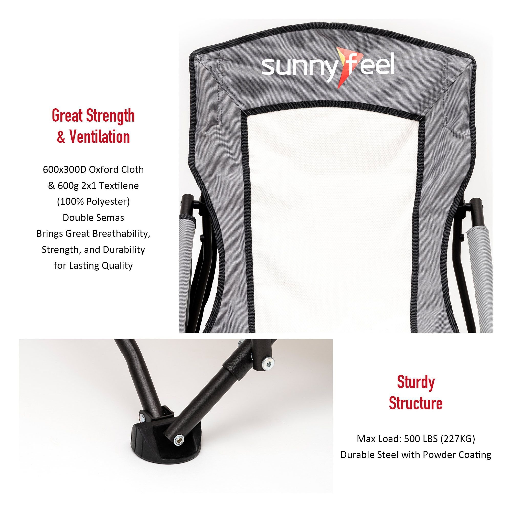 A Low Profile Sling Camping Chair that is Built for Anywhere: Use it as a camping chair, folding chair, lawn chair, travel chair, beach chair and more. Suitable for outdoor adventures, tailgating, fishing, backpacking, beach, picnic, sport games, car travelling, or just put it in the backyard, cabin, balcony, patio lawn parties. The SunnyFeel camping chair is an essential to add to your camping accessories.