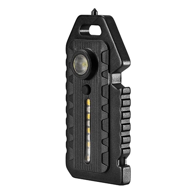 Multi-functional design with bottle opener, emergency window breaking hammer, survival whistle, and warning light.