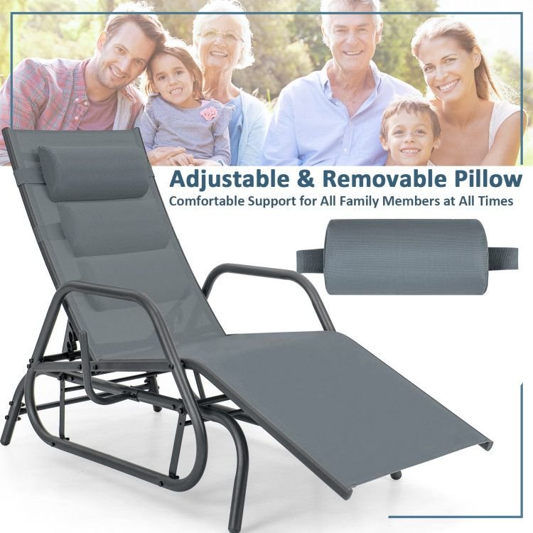 Outdoor Chaise Lounge Glider Chair with Armrests and Pillow