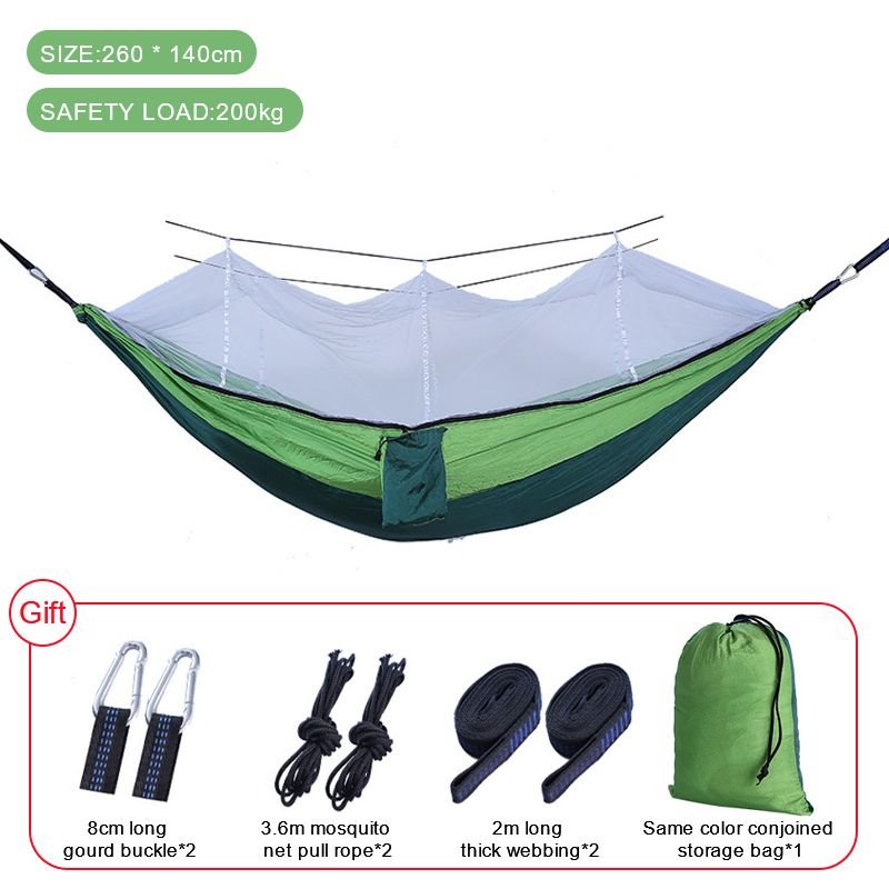 Accessories: 8cm silver iron buckle*2; 2m high-strength nylon rope*2; 3.6m mosquito net drawstring; a conjoined storage bag